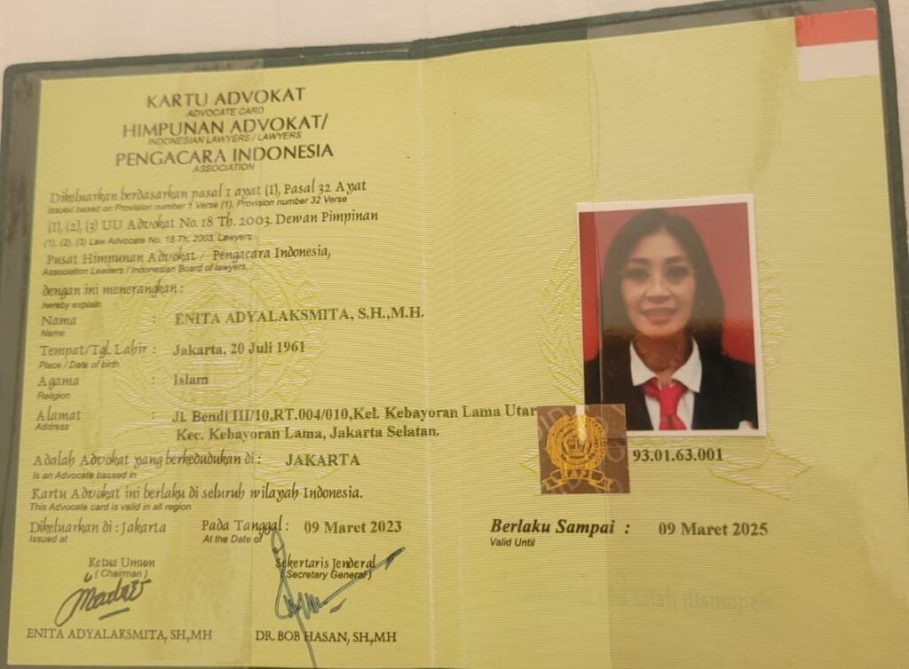 Nomor Induk Advokat : 93.01.63.001